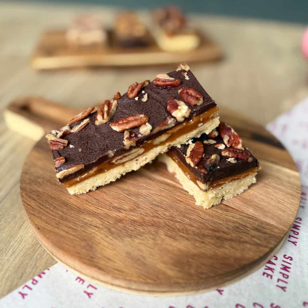 A luxurious twist on the classic, this indulgent treat features a buttery shortbread base topped with a rich layer of caramel, roasted pecans, and a silky dark chocolate truffle. Each bite offers a perfect blend of crunch, sweetness, and deep chocolatey richness.